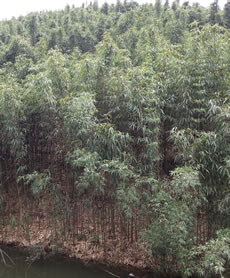 This small village is along the Sui River , It's here that this very special cane is grown. The river is bound by steep hillsides,which provides the perfect rainy climate for this species. The workers plant, tend and harvest the bamboo along these hills.